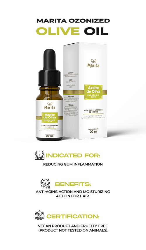 Experience the cutting-edge fusion of olive oil and ozone therapy with Marita's Ozonized Olive Oil, specifically designed to combat gum inflammation, moisturize hair, and provide anti-aging benefits. Embrace a healthier, more youthful you with our vegan, cruelty-free formulation.